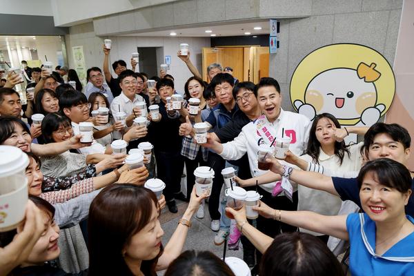 이번 행사에는 간부부터 신규 공무원까지 300여 명의 직원이 참여했다. 직원들은 준비된 음료를 함께 나누며 청렴을 주제로 자유롭게 대화했고, 컵에는 청렴 문구가 적힌 스티커가 부착돼 청렴 실천 의지를 환기시켰다.