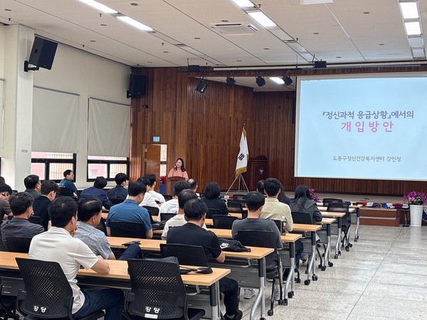 도봉구(구청장 오언석)는 지난 9월 9일 도봉경찰서 소속 파출소 및 지구대 경찰 80여 명을 대상으로 ‘정신응급개입 대응능력 향상 교육’을 진행했다.
